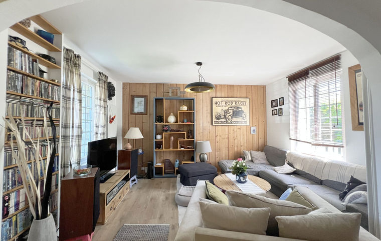 Cette maison, avec sa toiture en tuiles et ses ouvertures en PVC double vitrage, est en excellent état intérieur.